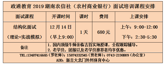 2019农信社面试课程12月14日(明天)早上9:00开班,1天=680元,所有岗位采取1:1保护招生