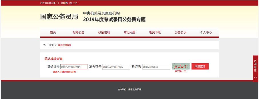 2019年国家公务员考试成绩查询入口由此进入。2019年国家公务员考试笔试成绩查询入口已经开通,查询入口由国家公务员考试录用系统提供,各位考生可凭本人身份证号和准考证号登录考录专题网站查询笔试成绩及最低合格分数线,并及时关注后续发布的首批面试名单。
