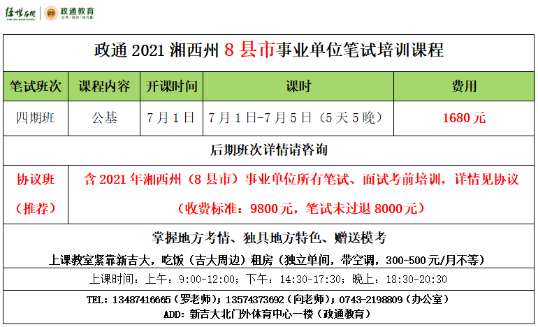 湘西州事业单位笔试培训四期班公基7月1日开课
