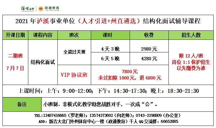 湘西州人才引进、州直遴选、泸溪事业单位面试二期班7月5日开课